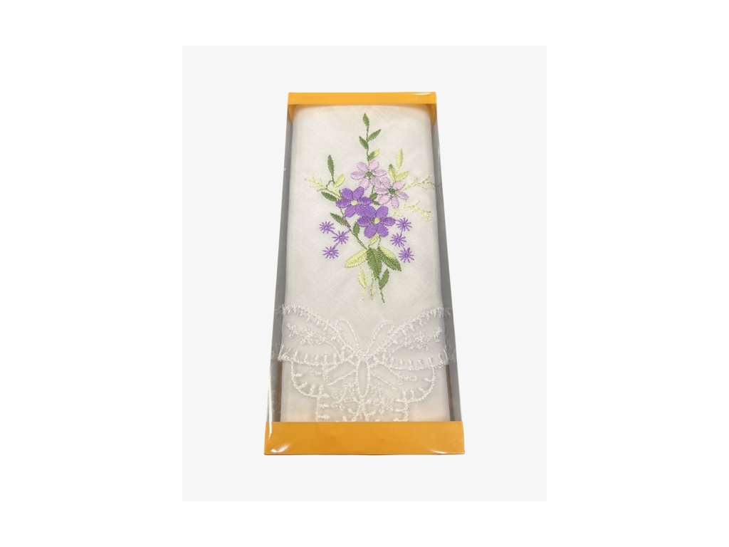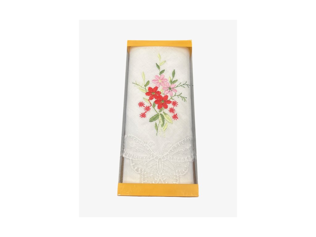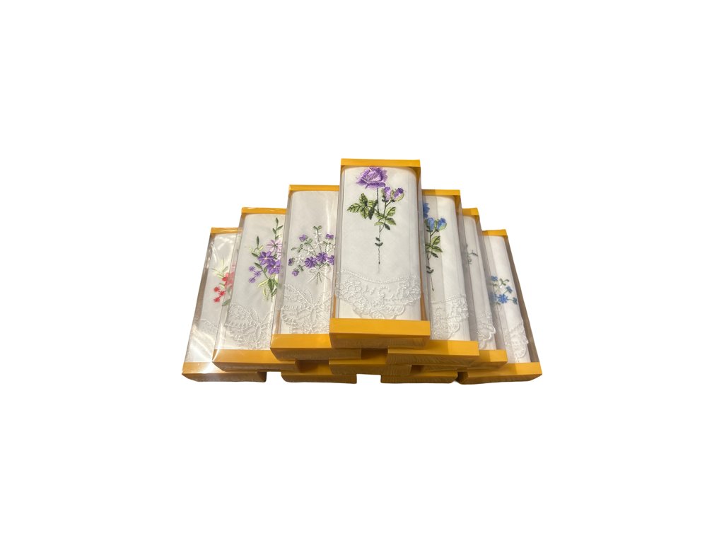 Dámský kapesník s výšivkou - 1 ks - v dárkové krabičce. Vhodné jako dárek. Česká výroba.100% bavlna. Různé dezény.