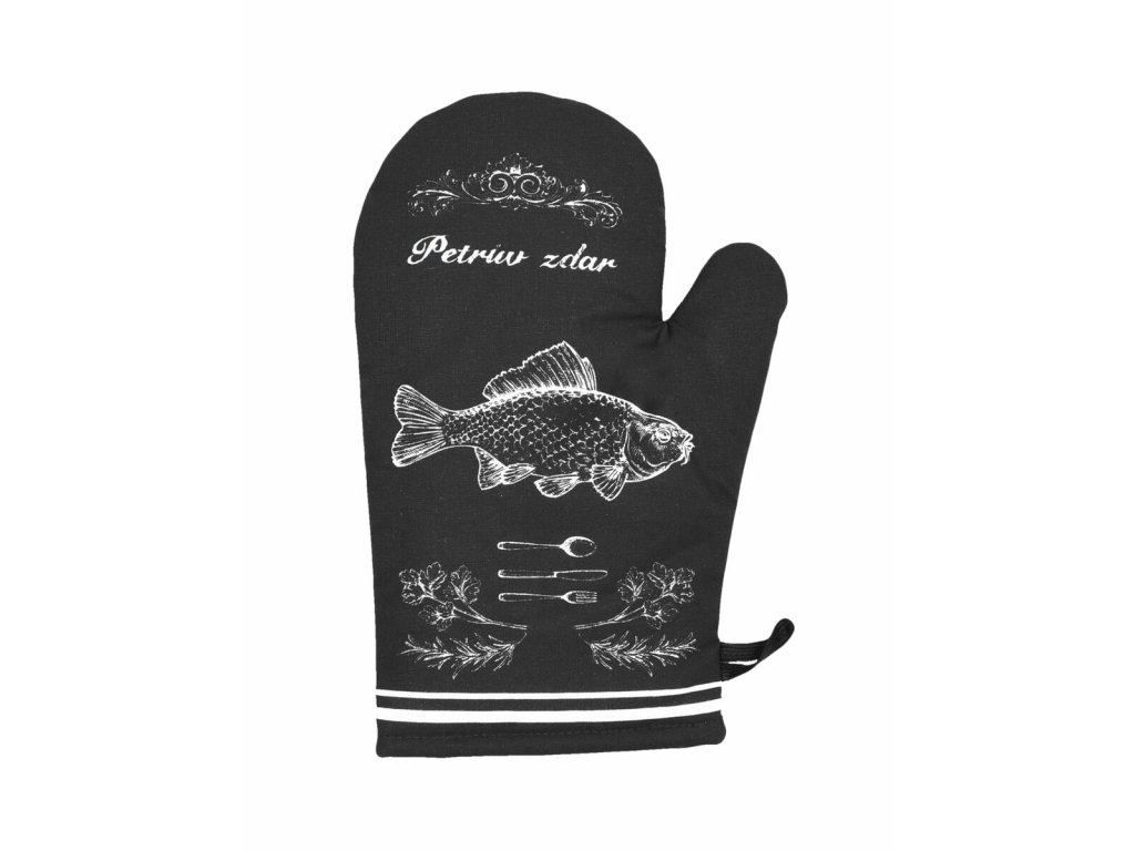 Chňapka má všitý magnet a poutko pro snadnou manipulaci.
