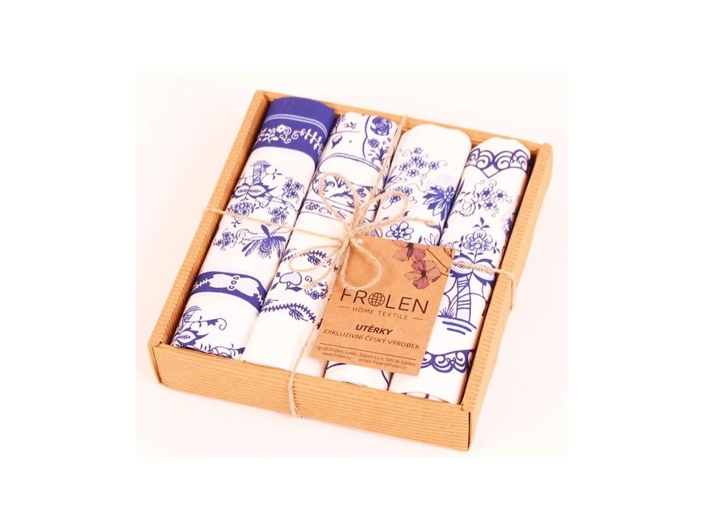 Kuchyňská utěrka - POLOLNĚNÁ TIŠTĚNÁ UTĚRKA Z PODKRKONOŠÍ CIBULÁK SADA 4 KS
