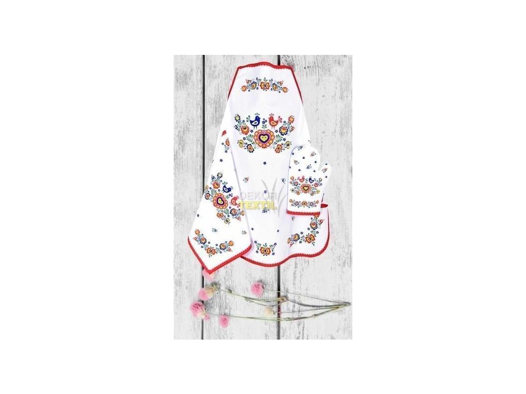 Do kompletu je možno dokoupit chňapku, utěrku, ubrus, prostírku a běhoun.