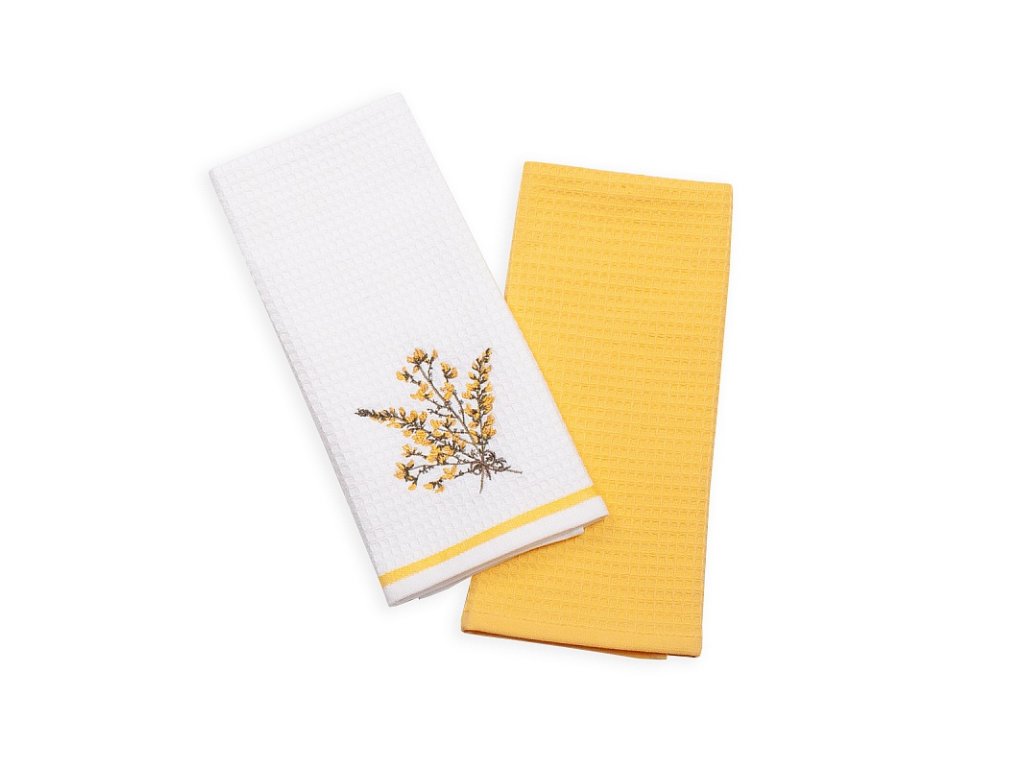 - 1x bílá utěrka s výšivkou a žlutou bordurou