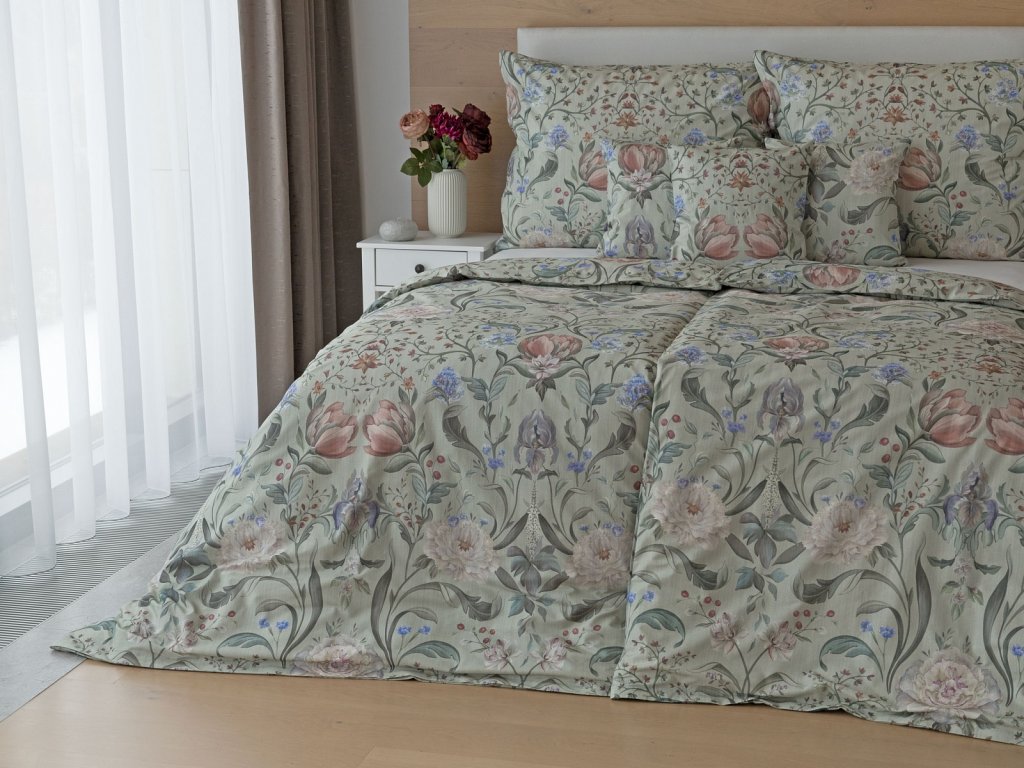 Vychutnejte si něžnou květinovou poezii s bavlněným povlečením Alma, které promění vaši ložnici v oázu klidu a pohodlí se svěžím nádechem jara. Květinový motiv vyniká v precizním detailu díky nejmodernější digitální tiskové technologii.