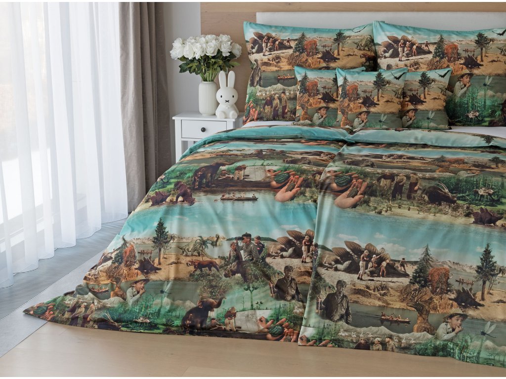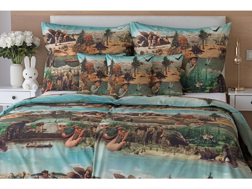 Vydejte se na napínavou výpravu do světa dávných dob s autorským motivem Cesta do pravěku, který promění každý dětský či studentský pokoj v místo plné fantazie a dobrodružství. Toto povlečení vybízí k objevování, snění i vlastním příběhům, které začínají pokaždé, když se uložíte ke spánku. O precizní detaily obrázků ze slavného československého filmu režiséra Karla Zemana se postarala nejmodernější digitální tisková technologie.