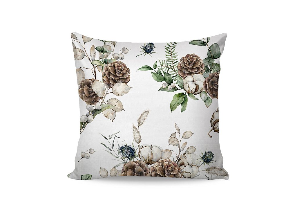 Saténové ložní povlečení Anabelle s decentním zimním dekorem navodí ve vaší ložnici útulnou atmosféru a prosvětlí interiér v ponurých zimních dnech. Motiv šišek doplněný jehličím, eukalyptovými snítkami a zralými plody bavlníku vyniká na bílém podkladu. Eleganci podtrhuje jemný lesk bavlněného saténu, který je pro tento vzor jako stvořený.