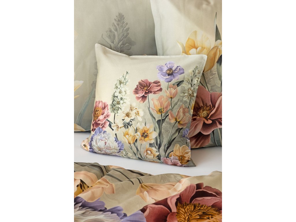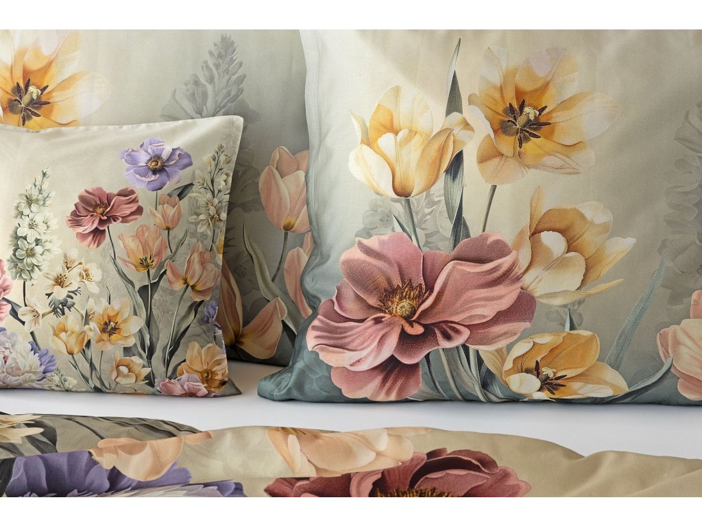 Se saténovým povlečením Elara vaše ložnice rozkvete do krásy. Barevné květy vlčích máků vynikají na modrozeleném podkladu, který přechází v horní části povlečení do tlumeného zelenošedého tónu. Díky nejmodernějšímu digitálnímu tisku vyniká květinový vzor v precizním detailu.