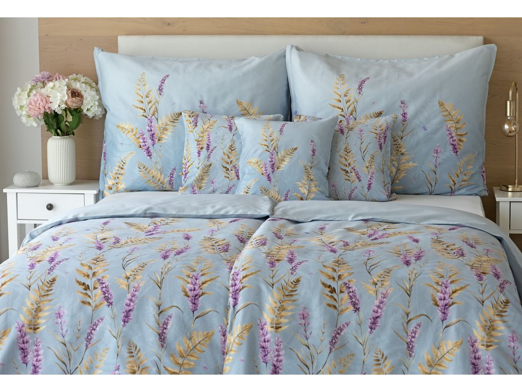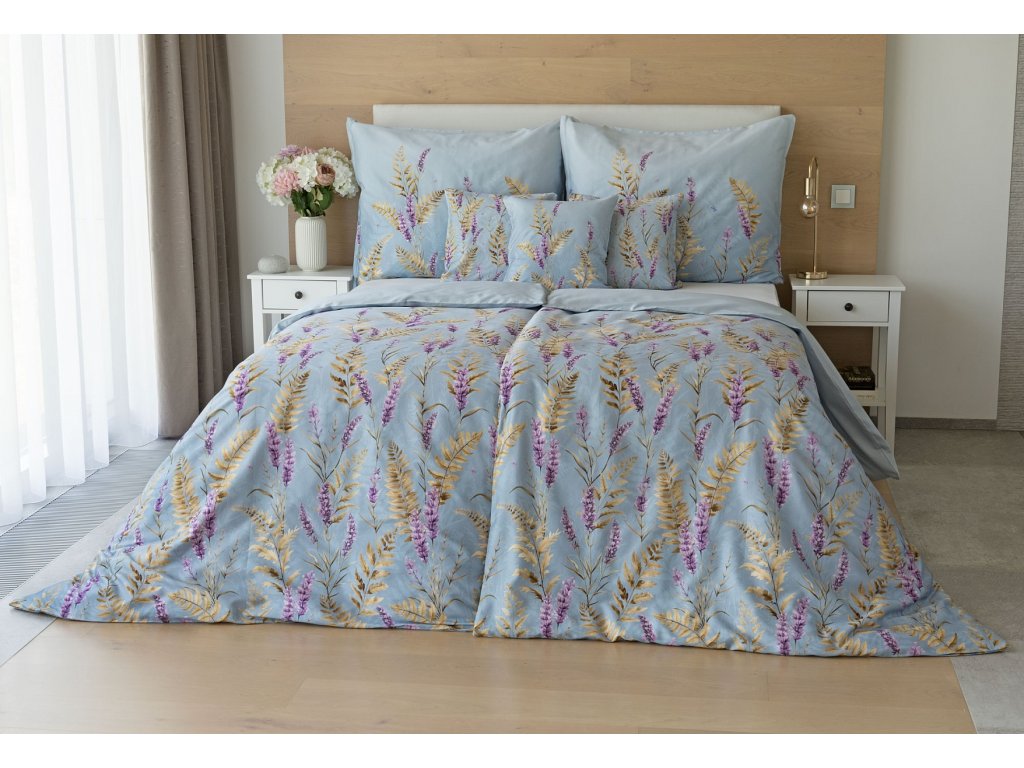 Okouzlující květinové povlečení Mirabel vnese do vaší ložnice nádech svěžesti. Květy kosatců, lučních zvonků, pomněnek i kopretin jsou v návrhu sladěny do atraktivní palety fialových a světle...