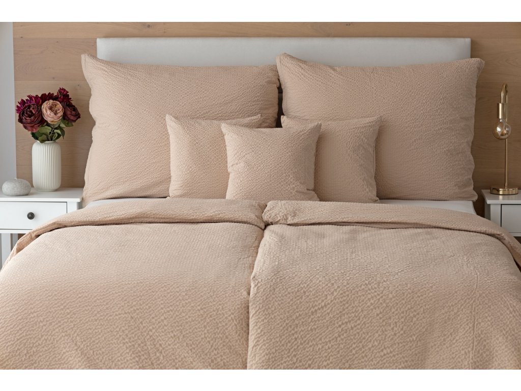 Krásné jednobarevné povlečení krep Deluxe - BÉŽOVÝ . Luxusní krepové povlečení, v provedení kvalitní 100 % bavlny je opatřeno komfortním zipovým uzávěrem. Snadná údržba bez žehlení