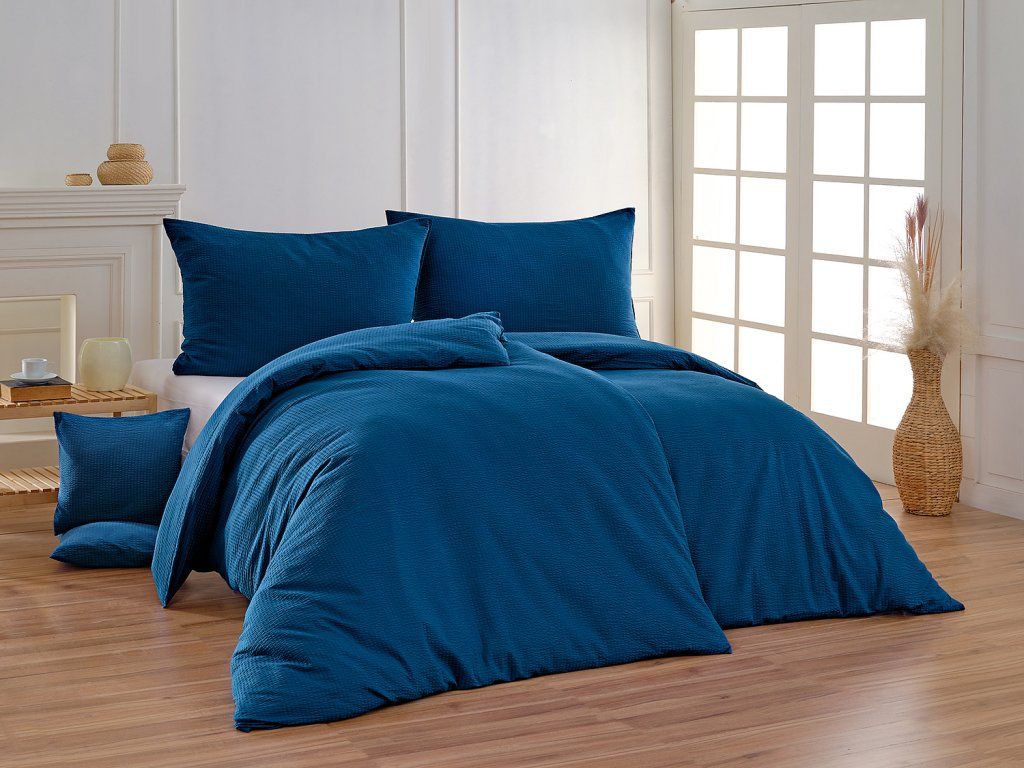 Krásné jednobarevné povlečení krep Deluxe - TMAVĚ MODRÝ . Luxusní krepové povlečení, v provedení kvalitní 100 % bavlny je opatřeno komfortním zipovým uzávěrem. Snadná údržba bez žehlení.