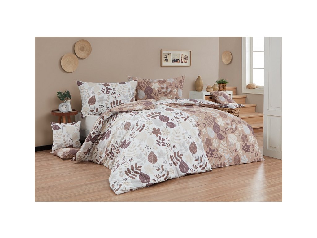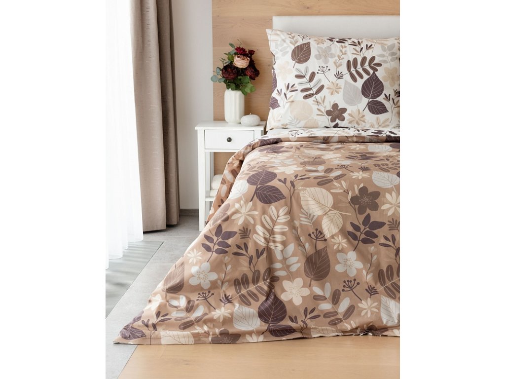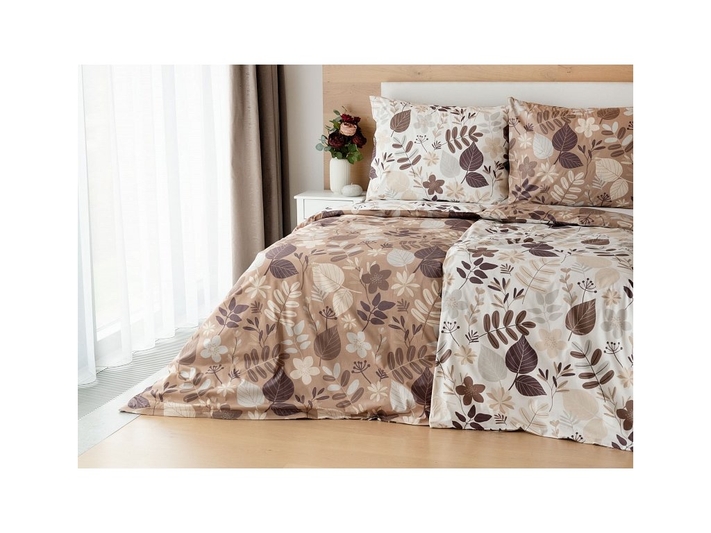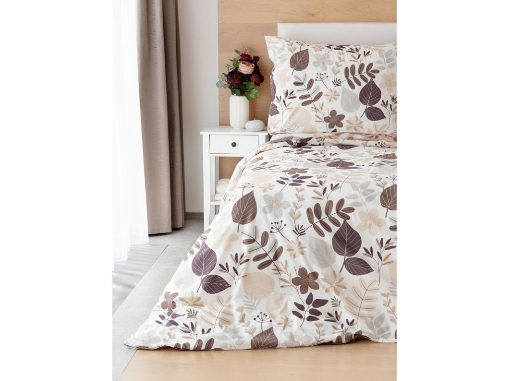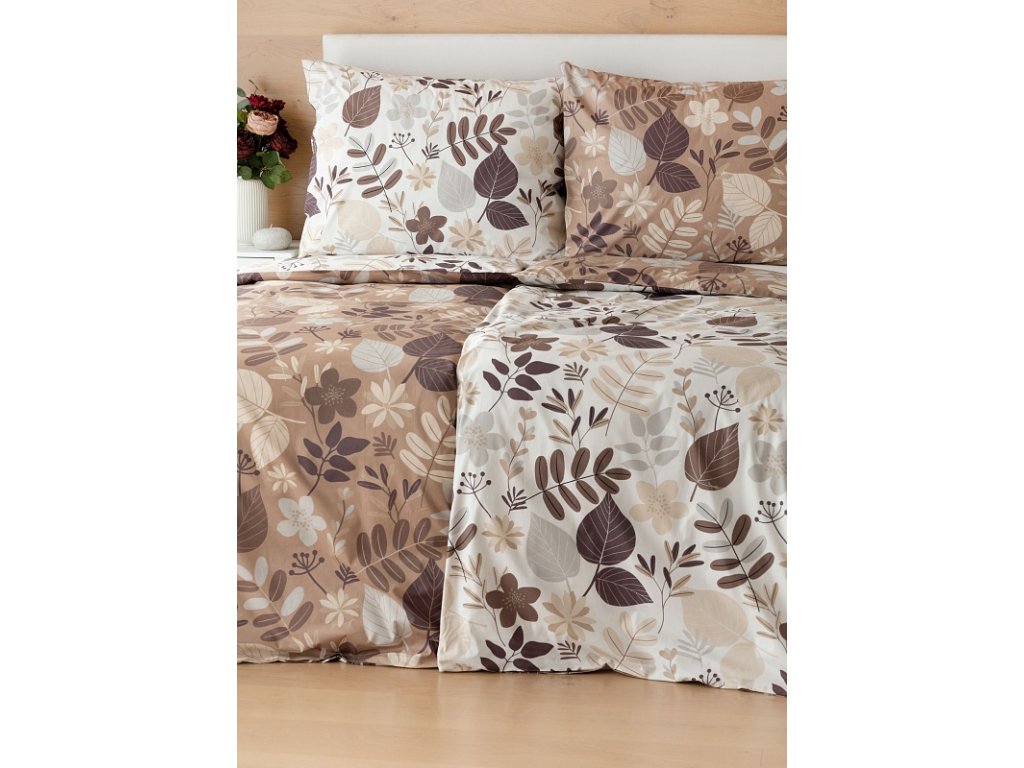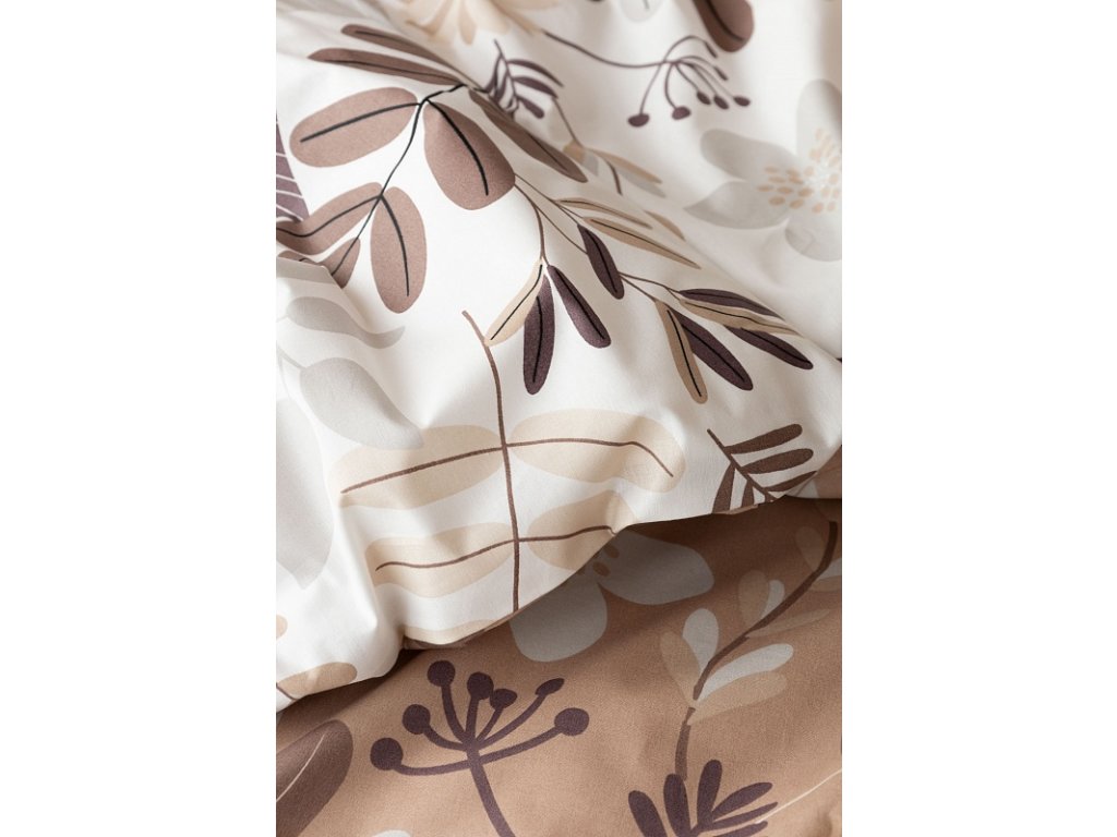 Motiv povlečení je z obou stran stejný, liší se pouze podkladová barva, která je u povlaku na polštář i na přikrývku z jedné stany krémově bílá a z druhé oříškově hnědá. Povlečení je opatřeno komfortním zipovým uzávěrem.