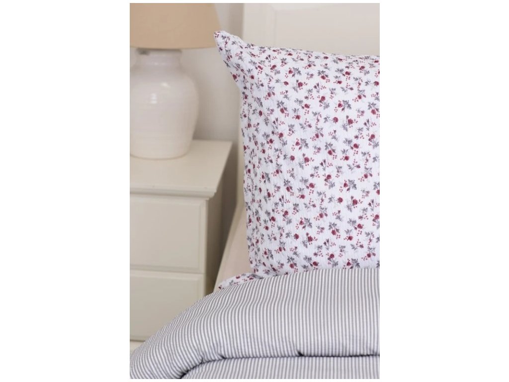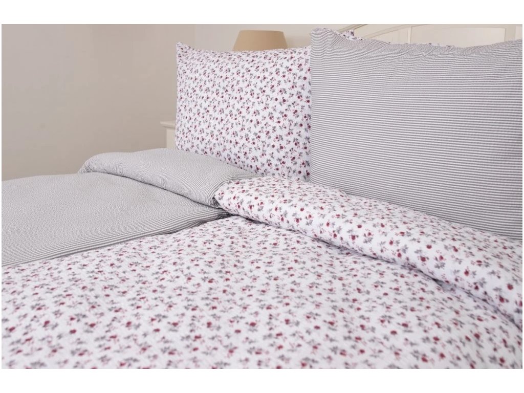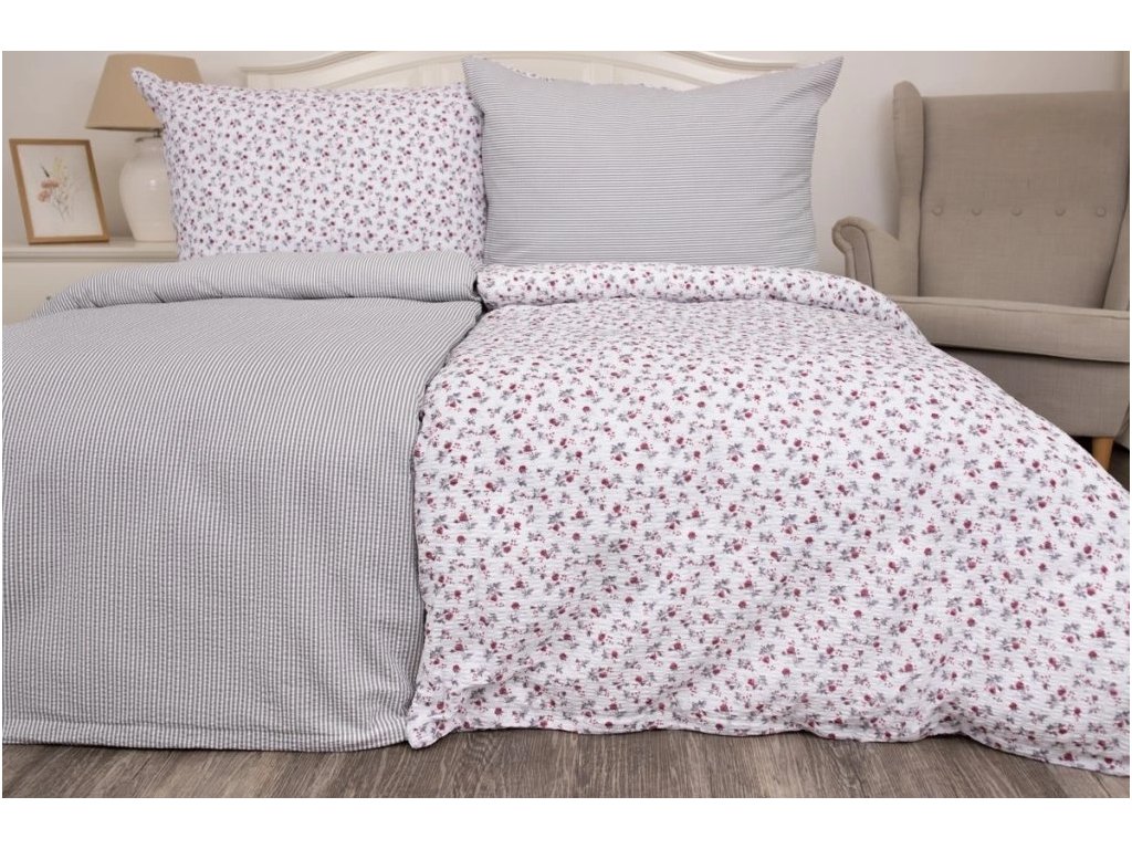Krásné ložní povlečení krep - Kytička bordó / šedý proužek. Luxusní krepové povlečení, v provedení kvalitní 100 % bavlny je opatřeno uzávěrem na zip. Snadná údržba bez žehlení.