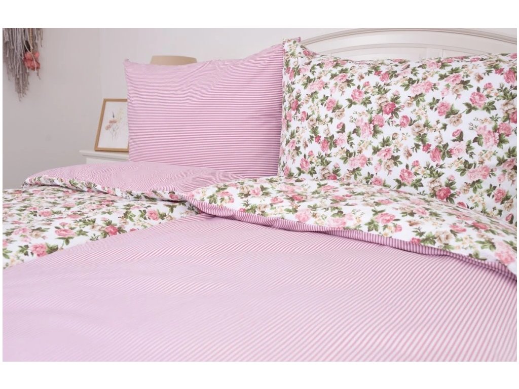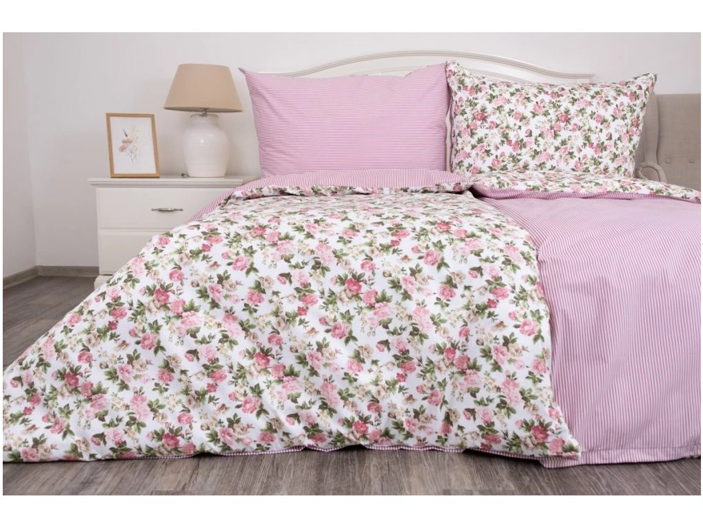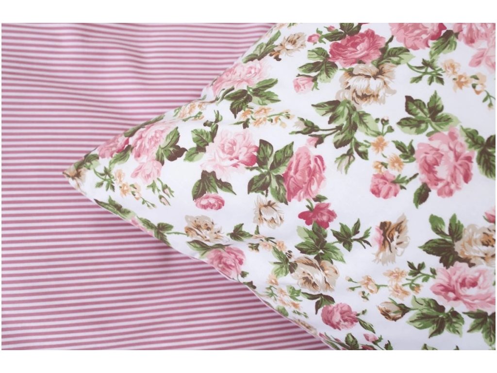 Ložní povlečení krep - RŮŽE rustikál / růžový proužek