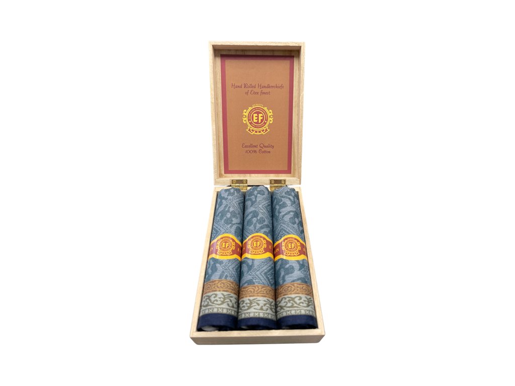 Pánský kapesník 3 ks - doutník v luxusní dřevěné krabičce. Vhodné jako dárek. Česká výroba 100% bavlna.