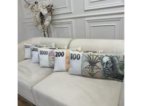 Velice hezký povlak na polštářek s potiskem - BANKOVKY i s výplňí 40x60 cm.