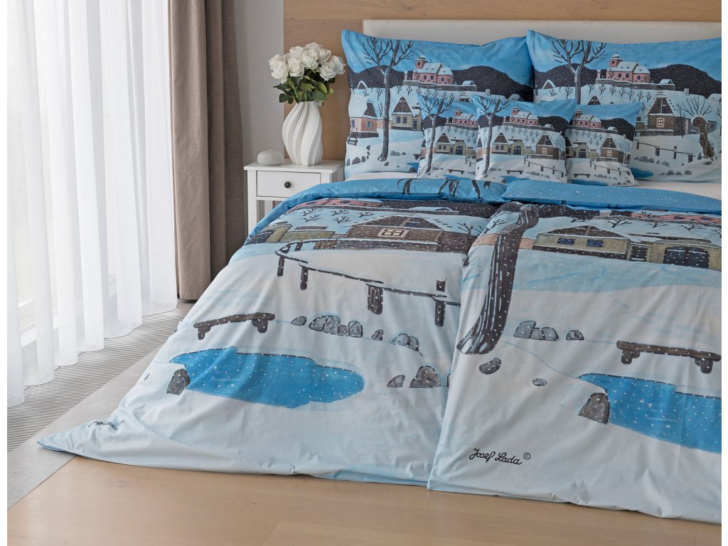 Pozvěte k sobě domů kouzlo nestárnoucích kreseb Josefa Lady, které jsou pro mnohé z nás symbolem dětství, harmonického venkova a české tradice. Povlečení Tichá noc evokuje klid zasněžených zimních nocí, kdy český venkov spí pod sněhovou peřinou a vše kolem utichá.