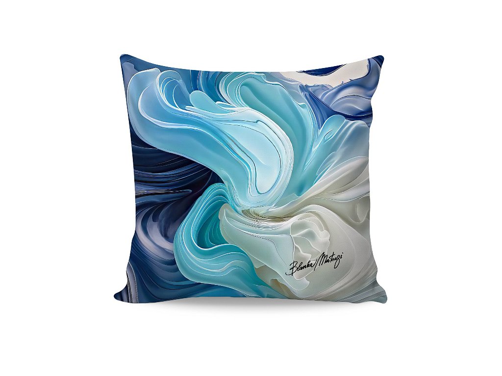 "Zrození z mořské pěny. Modré tóny vyjadřují klid, uvolněnost, mír, věrnost a oddanost. Modrá uklidňuje, podněcuje intuici a vnímání. Nechala jsem se unášet, jako bych plula na jemných vlnách." (Blanka Matragi)
