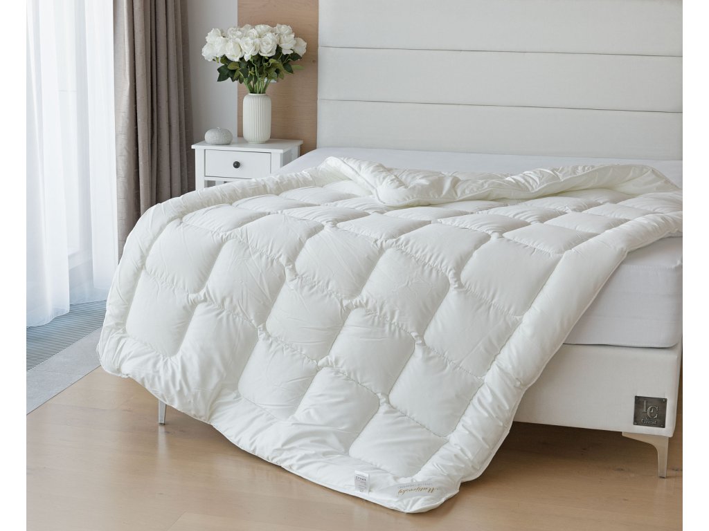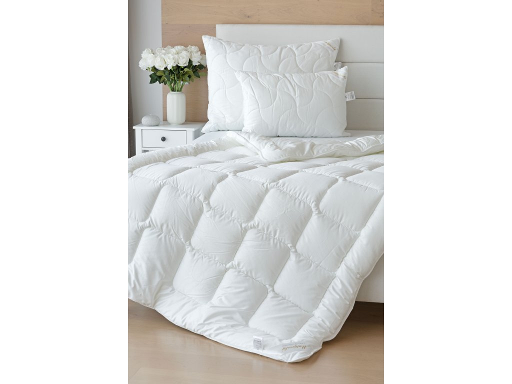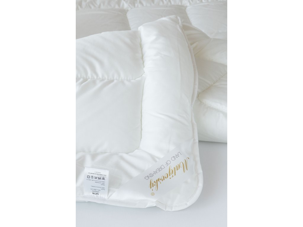 Povrchová látka v úpravě bavlněného saténu je hebká na dotek, prodyšná a dobře absorbuje vlhkost. Výplň přikrývky tvoří silikonizované duté vlákno, které je nadýchané, pružné a lehké. Prošití v celé ploše zajišťuje perfektní stabilitu výplně.