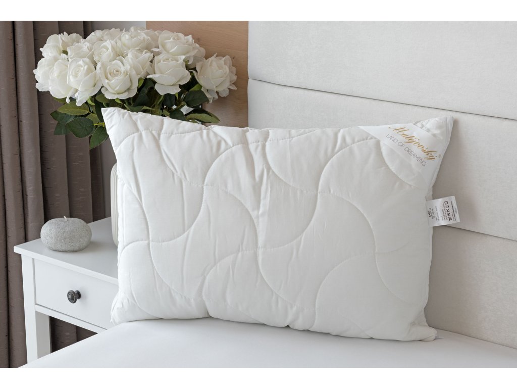 Povrchová látka v úpravě bavlněného saténu je hebká na dotek, prodyšná a dobře absorbuje vlhkost. Výplň polštáře tvoří duté kuličkové vlákno, které umožňuje regulaci výplně (u větších rozměrů polštářů).