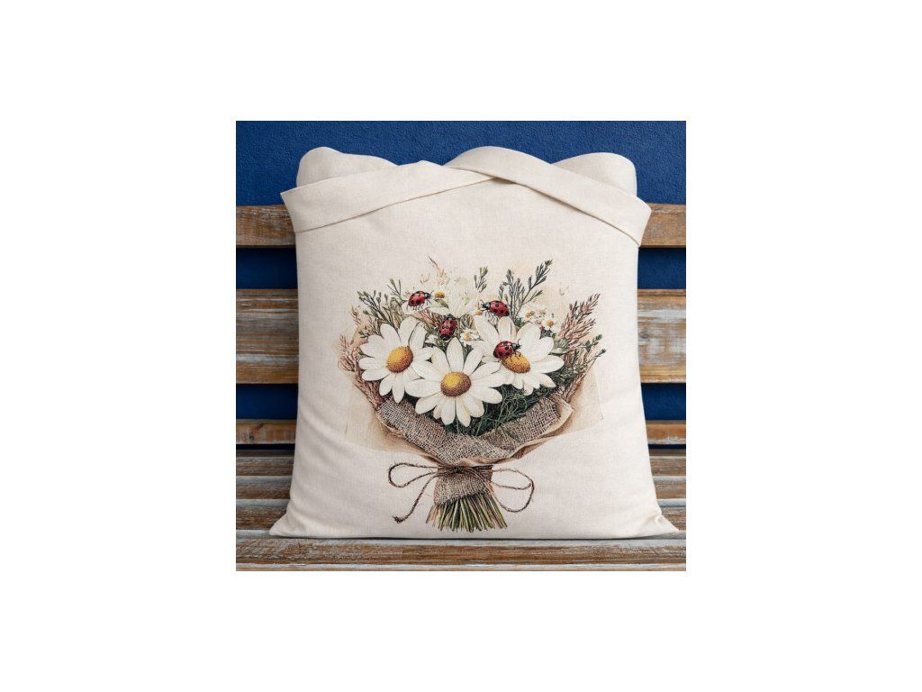 Bavlněná taška s květinovým motivem. Velikost tašky je 47x43cm.