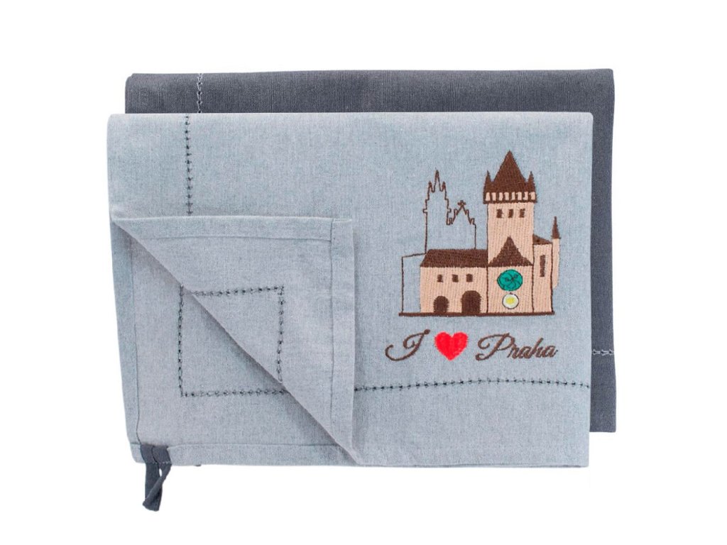 Utěrka - PRAHA - orloj sv.šedý/tm.šedý - 2ks