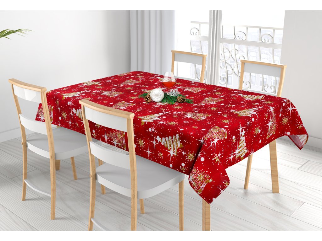 Velice hezký vánoční ubrus v rozměru 120x140 cm nebo 100x100 cm. Gramáž ubrusu je 155 g/m2.Složení 55%Bavlna 45%Polyester